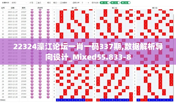 <p>Data解析導向設計是一種結合歷史數據與統計分析的選號方法,在濠江論壇中,這部分內容備受重視,資深彩民認為,只有深入挖掘數據,才能把握號碼的周期性變化和出現頻率。“Mixed55.833-8”是數字分析的結果,反映了彩民尋找號碼潛在規律的追求和努力。</p>