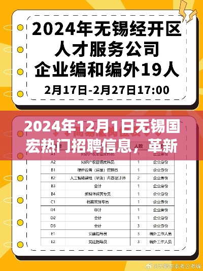 隨著科技的飛速發展,我們生活的每一個角落都在悄然改變,在這個變革的浪潮中,無錫國宏以其前瞻的視角和創新的步伐,引領著科技招聘的新紀元,本文將聚焦于國宏即將在2024年12月1日發布的最新招聘信息及其熱門產品,為您深度解析其最前沿的功能亮點和使用體驗,展現科技如何改變生活,激發每一位科技愛好者的無限興趣。