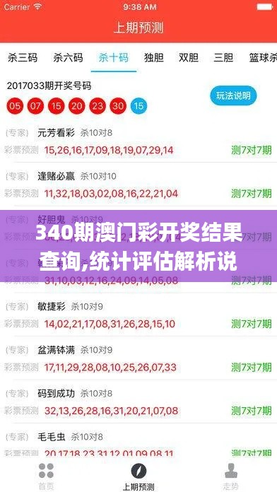 “340期澳門彩開獎結(jié)果查詢”和統(tǒng)計評估解析對彩票投注至關(guān)重要,合理運用這些信息,彩民可以在澳門彩的投注中占據(jù)更有利的位置,掌握查詢技巧、利用統(tǒng)計分析工具,如U24.395-7等,能進(jìn)一步增強對澳門彩趨勢的把握能力,提高中獎概率,掌握這些技巧和能力是提升中獎率的關(guān)鍵所在。