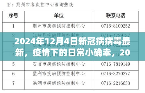 摘要:,,截至2024年12月4日,新冠病毒疫情仍在持續(xù),但人們也在日常生活中發(fā)現(xiàn)了一些小確幸。病毒的新篇章不斷呈現(xiàn),提醒人們保持警惕。當(dāng)前,全球各地都在積極應(yīng)對疫情,努力保護人們的健康和安全。雖然疫情帶來了諸多挑戰(zhàn),但人們也在努力尋找生活的樂趣和幸福。