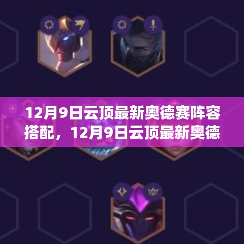 摘要:,,最新云頂奧德賽陣容搭配指南(12月9日版)詳細介紹了當前流行的陣容組合,包括英雄選擇、裝備搭配及戰術運用等。該指南為玩家提供了最新的陣容搭配思路,幫助玩家在游戲中取得優勢。