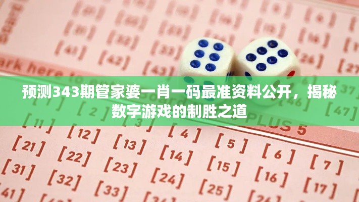 <p>在數(shù)字游戲的世界里,預(yù)測技術(shù)的運用至關(guān)重要,它能為玩家指引勝利之路,本文將深入探討最新的預(yù)測模型——“343期管家婆一肖一碼”,揭示其背后的制勝秘訣,并探討在澳門政策下如何合理利用這一資料,為消費者提供更加準確和有趣的預(yù)測體驗。</p>