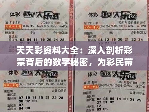 對于眾多彩票愛好者來說,彩票背后的數字秘密既令人興奮又充滿挑戰,天天彩資料大全為彩民們提供了深入剖析彩票數字的機會,揭示出彩票背后的神秘面紗,本文將探討彩票數據分析的重要性,并分享一些實用的技巧和方法,幫助彩民們更好地參與彩票游戲。