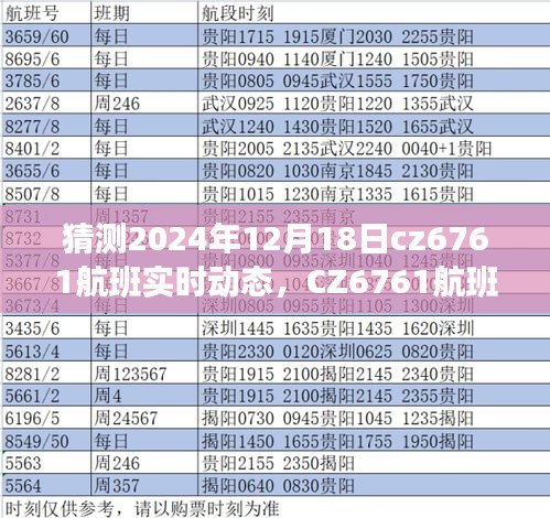 時光荏苒,轉眼來到了預測的2024年12月18日,這一天,CZ6761航班的起飛與降落都成為了人們關注的焦點,隨著起飛時間的臨近,各種關于航班的實時動態成為了人們熱議的話題,從乘客的登機到飛機的準備,從航線的規劃到天氣的變化,每一個細節都牽動著無數人的心弦,特別是那些期待歸家的旅客和那些迎接親友的家屬,更是對航班的動態保持著高度的關注。
