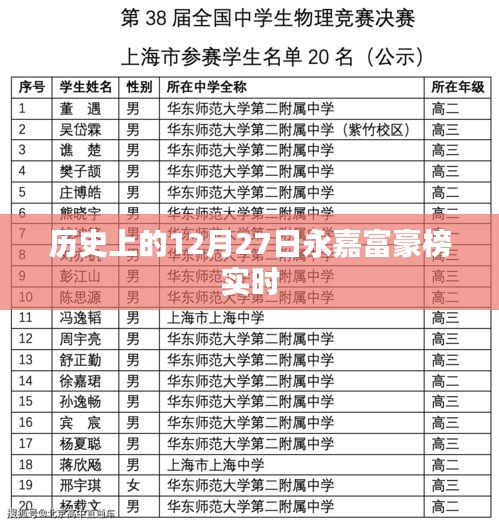 每年的12月27日,對于永嘉這片古老而繁榮的土地來說,都有著不同尋常的意義,這一天,永嘉的經濟發展歷程中涌現出了一批杰出的富豪,本文將帶您回顧歷史上的這一天,永嘉富豪榜的實時情況。