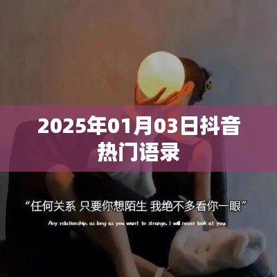 隨著科技的飛速發展和社交媒體的普及,抖音等短視頻平臺已經成為人們獲取信息、娛樂休閑的重要渠道,在抖音上,一些經典、富有哲理的語錄時常成為熱門話題,引發網友們的廣泛討論和共鳴,本文將為大家帶來2025年1月3日抖音上的熱門語錄,讓我們一起感受這些話語的魅力。