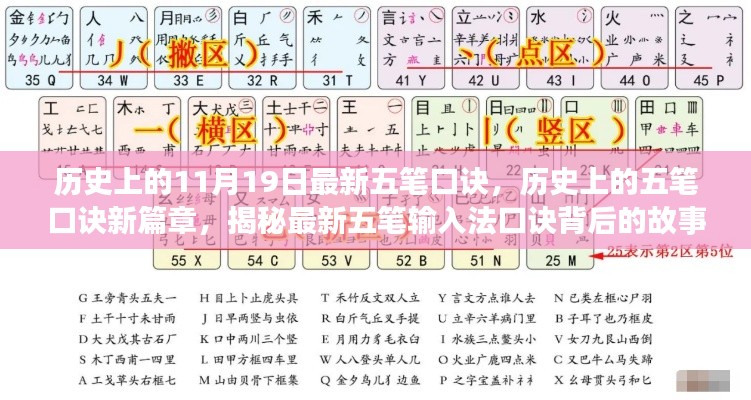 在信息技術(shù)飛速發(fā)展的時(shí)代,五筆輸入法作為漢字輸入的一種重要方式,其發(fā)展歷程中每一個(gè)進(jìn)步都值得我們紀(jì)念和探討,我們將目光投向歷史上的一個(gè)重要時(shí)刻——11月19日,這一天五筆輸入法迎來(lái)了新的里程碑,本文將帶領(lǐng)大家走進(jìn)五筆口訣的演變歷程,深入了解最新五筆口訣的誕生背景,探索其實(shí)際應(yīng)用價(jià)值,并輔以案例分析,讓我們共同感受五筆輸入法的魅力。