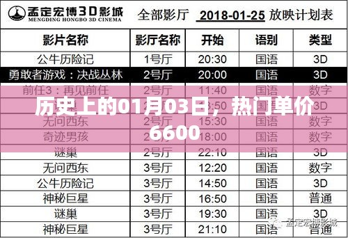 在浩瀚的歷史長河中,每一個日期都承載著無數的故事和事件,我們將目光投向歷史上的01月03日,探尋那一天所發生的重要事件,以及與之相關的熱門單價6600的背后故事。
