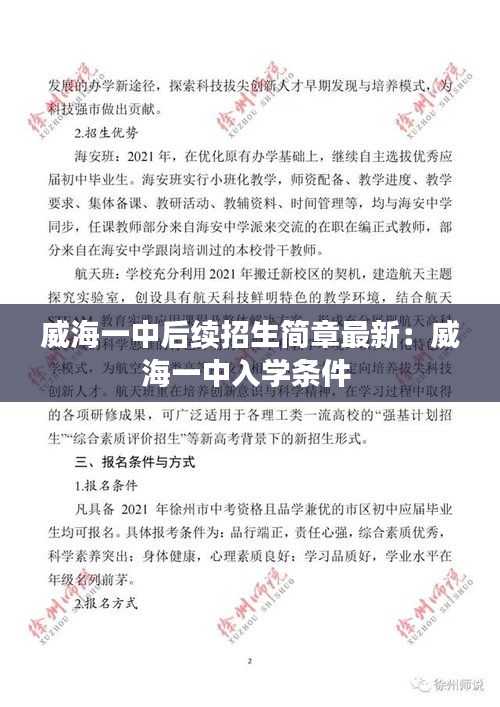 威海一中,作為威海市乃至山東省內知名的高級中學,一直以來都以其優秀的教育教學質量和嚴謹的學風著稱。隨著新學期的臨近,許多家長和學子們都在關注著威海一中的后續招生簡章。本文將為大家詳細介紹威海一中最新的招生政策及相關信息。