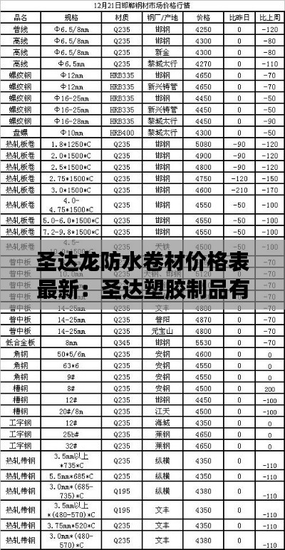 隨著建筑行業的不斷發展,防水材料在建筑中的應用越來越廣泛。圣達龍防水卷材作為市場上知名的品牌,其產品質量和性能得到了廣大用戶的認可。本文將為您詳細介紹圣達龍防水卷材的最新價格表,幫助您了解產品的價格信息。