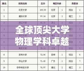 世界大學排名是衡量全球高等教育機構綜合實力的重要指標之一,在物理學科方面,全球頂尖大學擁有卓越的科研實力和聲譽,為全球物理學界培養了大量優秀人才,隨著科技的不斷進步和全球化的深入發展,全球大學在物理學科的競爭與合作將更加激烈,推動物理學研究的突破和創新。