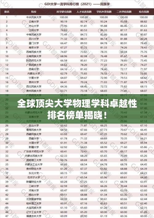 隨著全球化的深入發展,教育領域的國際交流與合作日益頻繁,世界大學排名成為了評估全球高等教育機構綜合實力的重要參考,在眾多學科領域中,物理科學一直以其深奧的理論和實驗研究的突破性占據重要地位,本文將圍繞“世界大學排名”與“物理”這兩個關鍵詞,探討全球頂尖大學在物理學科方面的卓越表現。