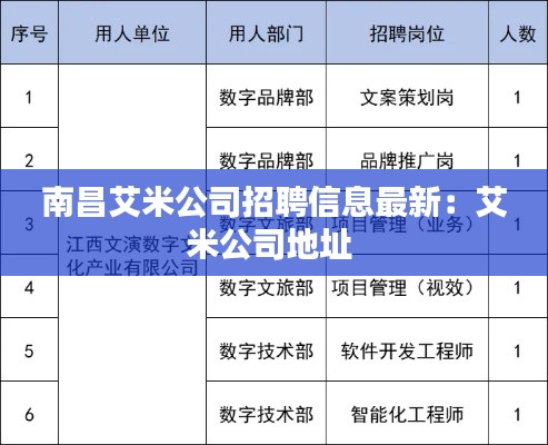 公司地址:江西省南昌市高新技術產業開發區XX路XX號南昌艾米公司