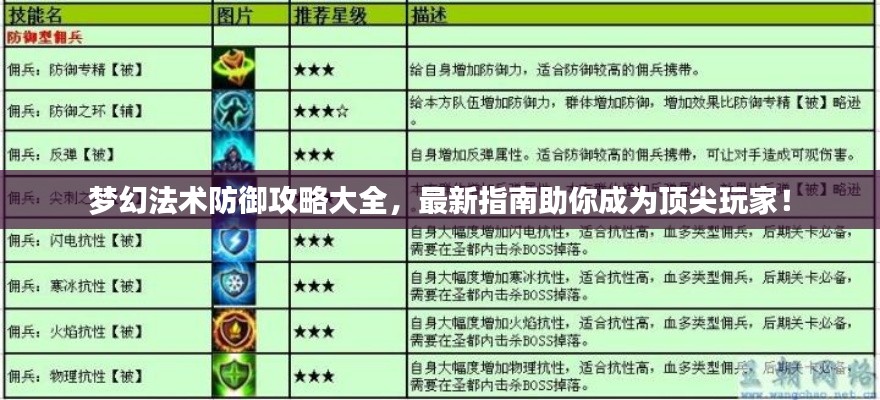 在夢幻般的游戲世界中,法術防御是每一個玩家都需要掌握的重要技能,本文將為你帶來最新的夢幻法術防御攻略,幫助你在游戲中更好地應對敵人,提升生存能力。