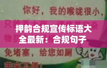 押韻合規宣傳標語是一種極具吸引力和記憶點的宣傳方式。它通過韻律和節奏的運用,使得信息更加朗朗上口,易于傳播。本文將為您整理最新一批押韻合規宣傳標語,旨在幫助各類組織和個人在宣傳活動中脫穎而出。