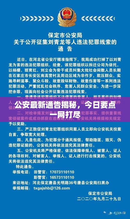 公安機關發(fā)布了最新的通告,其中包含了多項重要內容,涉及到社會治安、交通管理、網絡安全等方面,以下是關于公安今日通告最新內容的詳細介紹。