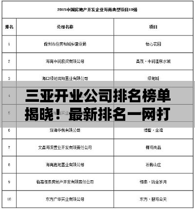 三亞開業公司排名榜單揭曉!最新排名一網打盡