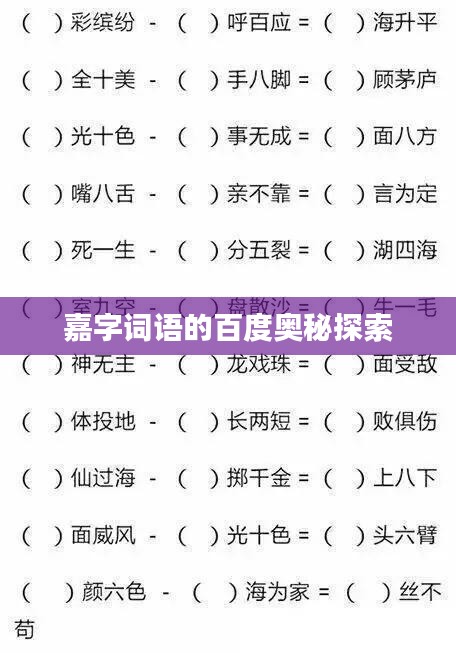 隨著科技的日新月異,我們的生活已經(jīng)離不開互聯(lián)網(wǎng),當(dāng)我們遇到生詞或者想要了解某個詞語的更多含義和用法時,百度搜索成為了我們的首選工具,我們就來“百度一下”帶有“嘉”字的詞語,探尋這些詞語的豐富內(nèi)涵。