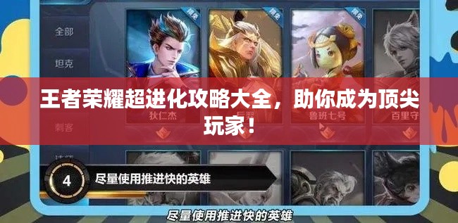 隨著王者榮耀的日益火熱,眾多玩家在游戲中追求更高的段位和榮譽(yù),本文將為大家?guī)硗跽邩s耀超進(jìn)化攻略最新內(nèi)容,幫助大家提升游戲技巧,掌握最新戰(zhàn)術(shù),助你成為榮耀王者。