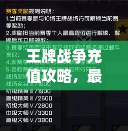 《王牌戰爭》作為一款熱門的競技類游戲,吸引了眾多玩家的參與,在游戲中,充值不僅可以加速游戲進程,還能讓玩家獲得更好的游戲體驗,本文將為大家帶來最新的王牌戰爭充值攻略,幫助大家在游戲中充值更明智、更實惠。