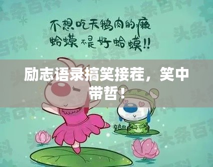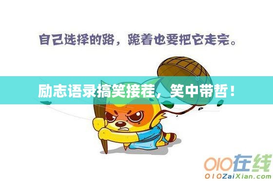 十六、人生最大的失敗不是跌倒而是放棄嘗試,搞笑接語:就像玩游戲一樣不嘗試怎么能通關?跌倒了就爬起來繼續戰斗吧!人生沒有失敗只有經驗! 十七、生活給你壓力是為了讓你變得更強大,搞笑接語:沒錯沒錯!就像鍛煉肌肉一樣越壓越強大,接受挑戰吧讓壓力成為你變強的動力! 十八、有時候人生需要一點點冒險精神才能活出不一樣的精彩,搞笑接語:說得太對了這就像玩漂流一樣刺激又有趣只有冒險才能收獲更多的驚喜和快樂! 十九、人生最重要的是保持一顆樂觀向上的心態不管遇到什么困難都要微笑面對,搞笑接語:說得對極了這就像在黑暗中找到一束陽光一樣即使遇到困難也要保持樂觀心態相信一切都會變好! 二十、讓我們在人生的道路上攜手前行不怕困難勇敢追夢用勵志語錄搞笑接語激勵自己成為更好的人!一起奮斗吧向著美好的未來奔跑吧!