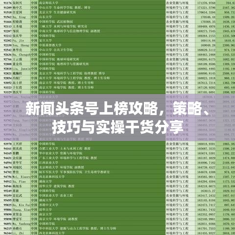 隨著移動互聯網的普及,新聞頭條號已成為信息傳播的重要渠道之一,越來越多的個人和組織希望通過新聞頭條號吸引關注,擴大影響力,本文將介紹新聞頭條號的上榜策略、技巧及最佳實踐,幫助讀者更好地利用這一平臺。