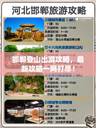 本文為您帶來了一份詳盡的邯鄲爬山出游攻略,在出發前,選擇合適的登山地點,準備好爬山裝備,制定合適的登山路線,在游玩過程中,注意保護自然環境,遵守景區規定,品嘗當地特色美食和文化,希望這份攻略能幫助您在邯鄲度過一個愉快的爬山之旅。