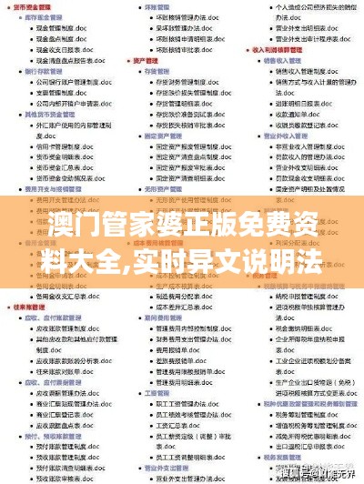 在現代社會,尤其是在澳門這個充滿活力的特區,信息和數據的及時獲取與分析顯得愈發重要。澳門管家婆正版免費資料大全應運而生,為廣大用戶提供了豐富的資訊和便利的操作平臺。無論是本地商家,還是游客,如何獲取準確、及時的信息,便成為每個人日常生活中不可或缺的一部分。