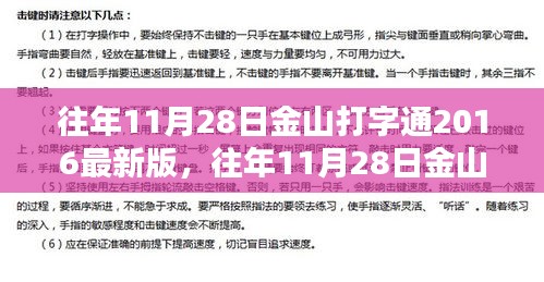 在數字化時代,打字技能已經成為我們日常生活和工作中不可或缺的一部分,對于許多人來說,金山打字通是一款經典的打字練習軟件,它以其強大的功能和良好的用戶體驗贏得了廣大用戶的喜愛,本文將聚焦于金山打字通2016最新版在往年11月28日的發布,帶你深入了解這一軟件的各項特性和使用體驗。
