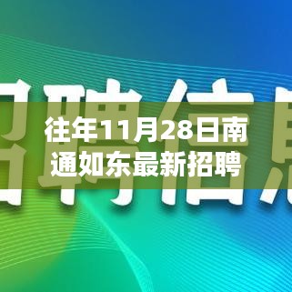 往年11月28日南通如東的最新招聘信息為求職者提供了豐富的就業機會,求職者需要關注市場動態,不斷提升自己的能力和技能水平,以適應市場的需求,還要關注各類招聘信息,做好充分的準備,以抓住機遇,希望這篇文章能為你提供有用的信息,祝愿你找到理想的工作!