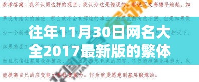 在數字化浪潮洶涌的當下,網絡文化早已成為時代不可或缺的一部分,而在這其中,網名作為個人網絡身份的象征,更是承載著人們的情感、記憶與時代變遷,本文將帶您一同回顧往年11月30日所發布的網名大全最新版繁體,探尋其背后的故事、重要事件、影響以及在特定時代中的地位。